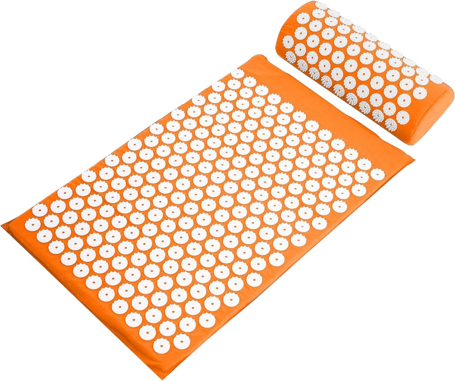 Fitvids Acupressure Mat and Pillow Set for Back/Neck Pain, Acupuncture Products to Relieve Muscle Fatigue, Improve Insomnia for Sedentary People, Acupuncture Eases Stress, Massage Mat, Orange