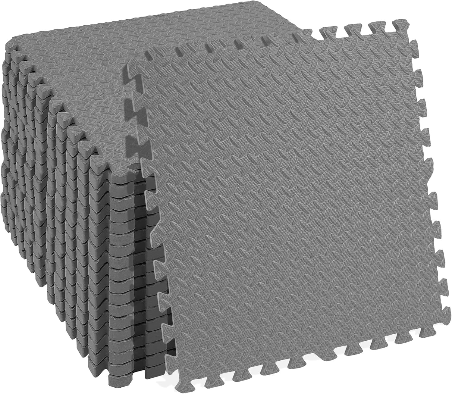 Fitvids Puzzle Exercise Mat with EVA Foam Interlocking Tiles, Gray, 1” Thick, 6 Tiles, 24 Sq Ft
