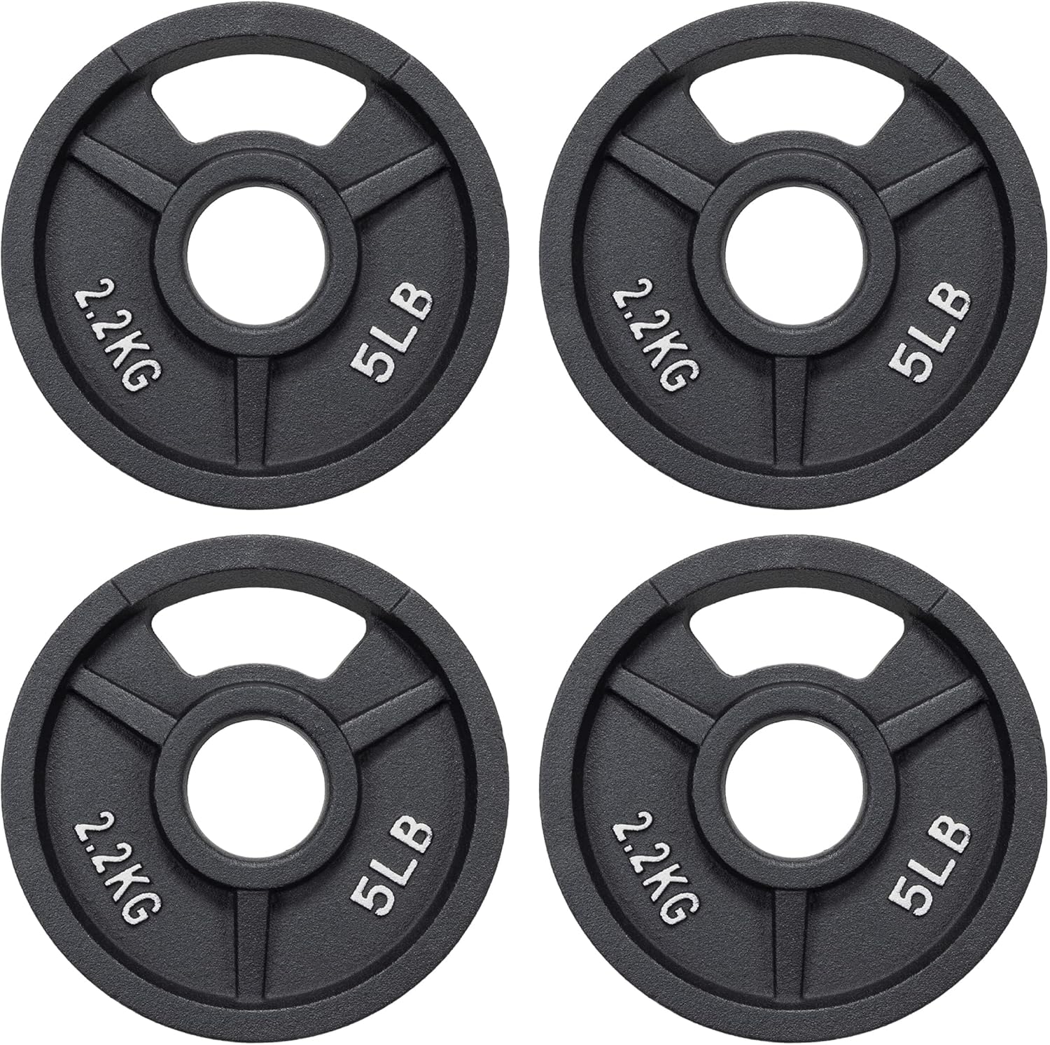 Fitvids Standard Cast Iron 1-Inch Weight Plate for Strength Training & Weightlifting, Multiple Weights Available, 5LB (Set of 4)